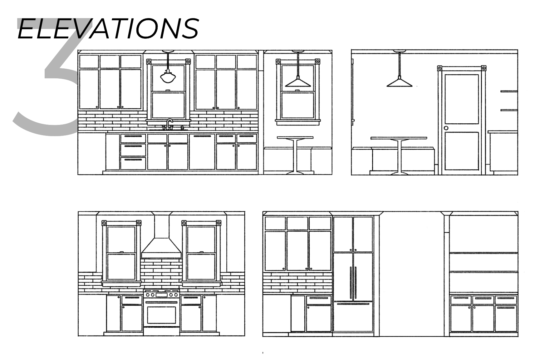 Divided by a cased opening, this kitchen prioritizes functionality and flow of space while the breakfast nook brings a sense of comfort and ease back into the space. The patterned flooring and rich wood trim coupled with the painted cabinets, brass and black hardware, and paneled appliances merge traditional and contemporary styles to create a space that is cohesive, comfortable, and homey.